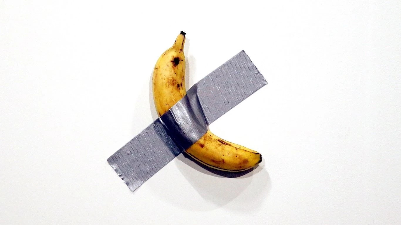Un caso llamativo es el famoso plátano pegado a la pared de Cattelan.
