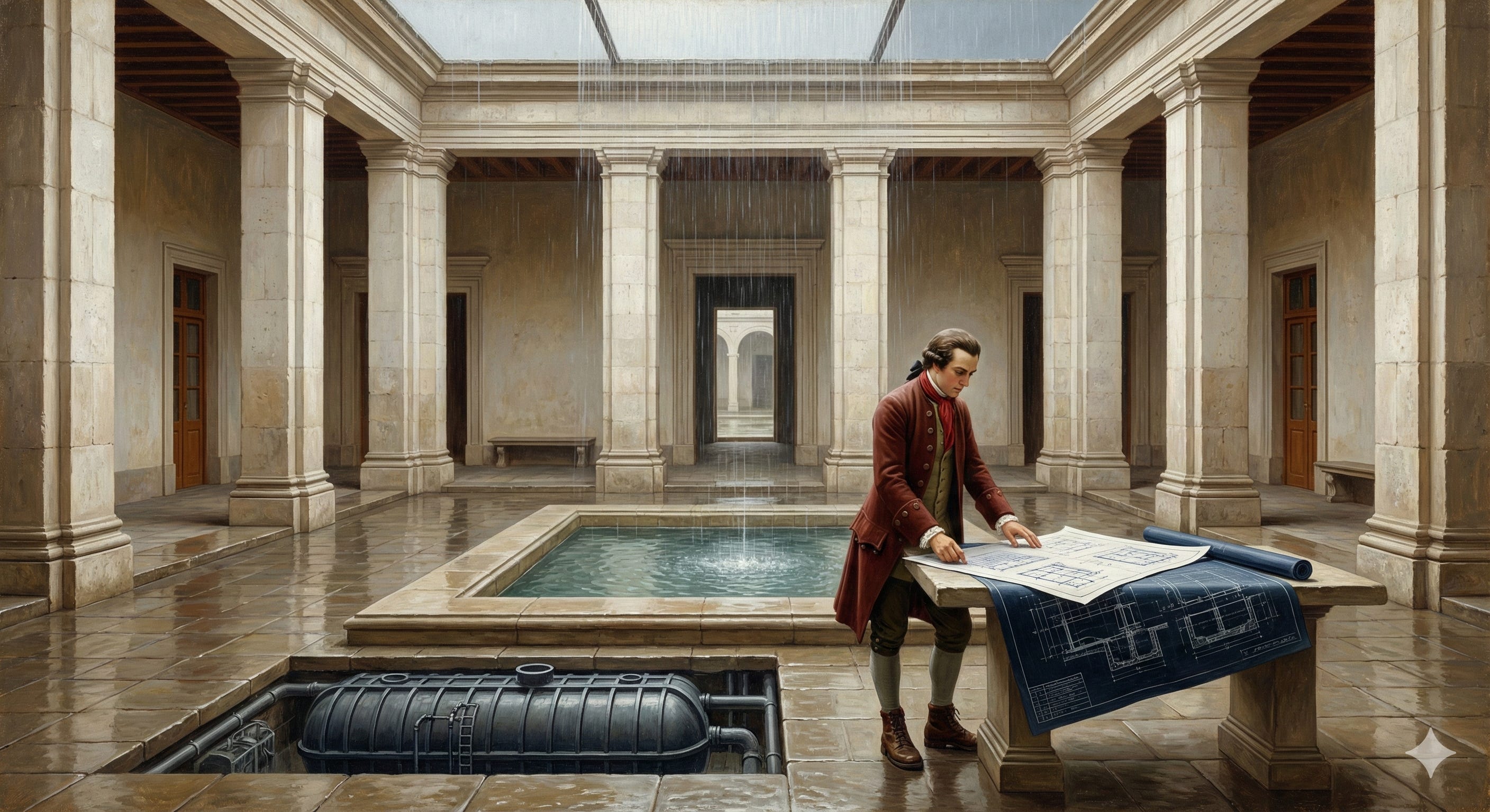 Para encontrar una solución integral, la ingeniería civil está retomando ideas de la arquitectura antigua. Los romanos fueron los primeros grandes gestores pluviales con su impluvium: pequeñas cisternas (de unos 30 cm de profundidad) y canales ubicados en los patios internos para capturar y almacenar la lluvia.